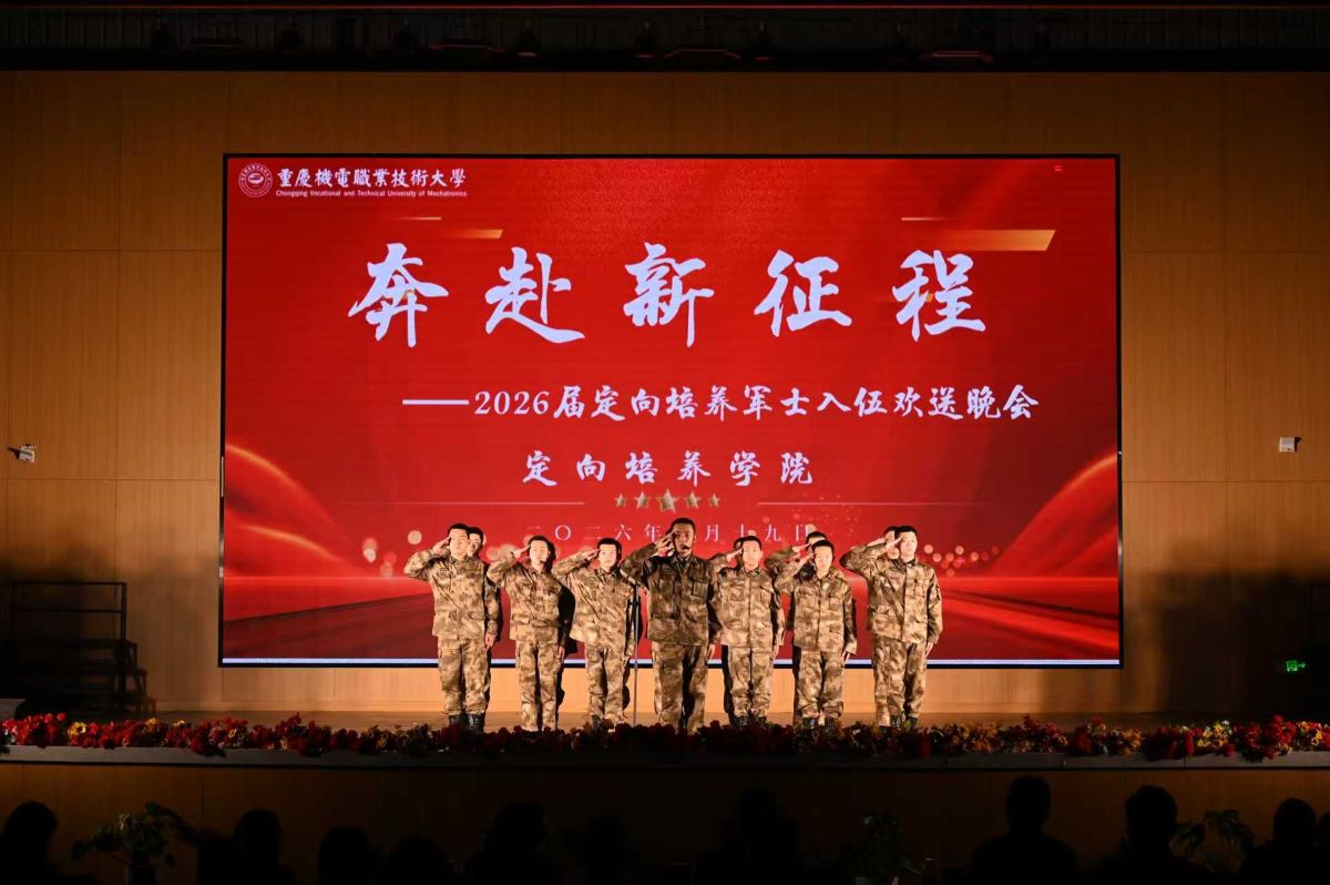 誓言铮铮,许下强军之约;战歌嘹亮,唱响出征豪情。3月19日上午,学校2026届定向培养军士入伍欢送大会在风雨球场隆重举行。即将奔赴军营的军士生们胸佩红花、肩披绶带,以昂扬姿态迎来人生的重要时刻。璧山区人民武装部领导、全体校领导、军士生家长代表、各二级学院及相关职能部门负责人、定向培养学院全体师生共同见证这一庄严盛事。校党委副书记、副校长何超主持大会。