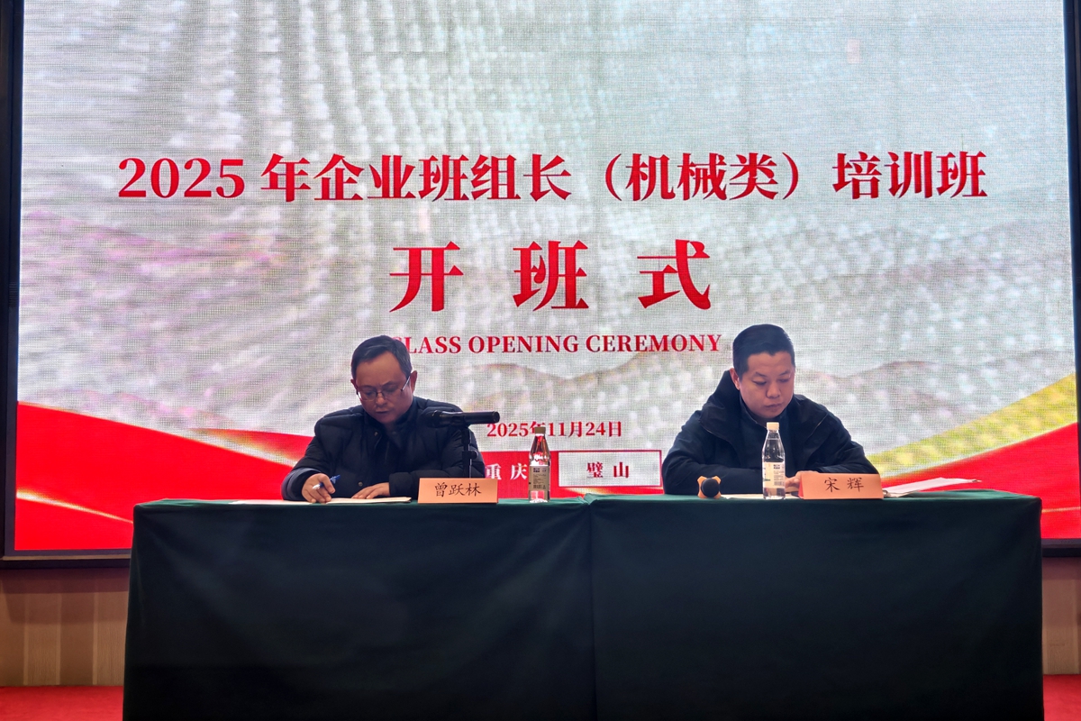 2025年11月25日上午,由重庆市总工会主办,重庆装备制造工匠学院、beat365在线唯一官网承办的“2025年重庆市企业班组长(机械类)培训班”在璧山区民生大酒店举行开班式,来自50余家企业的100名班组长和技术骨干参加培训。开班式由重庆装备制造工匠学院院长宋辉主持。