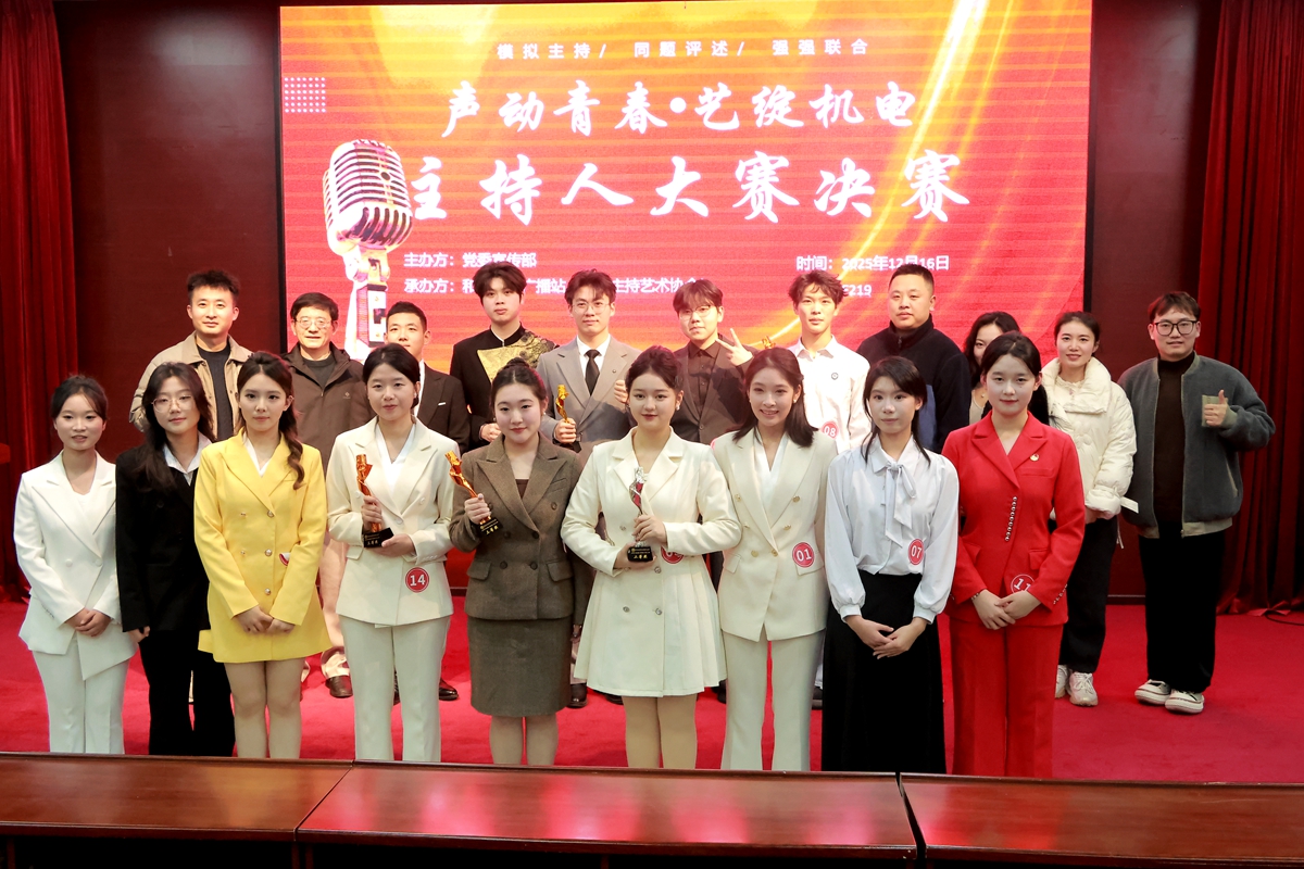 为进一步丰富校园文化生活,提升学生综合素养,12月16日,学校2025年“声动青春·艺绽机电”主持人大赛总决赛在F219学术报告厅举行。马克思主义学院院长徐茂华、党委宣传部副部长唐显峰、电气与电子工程学院党总支副书记薛锋、校团委副书记皮程程、党委宣传部张维峰、党委办公室李怡文担任比赛评委。