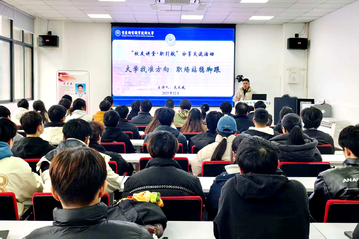 为帮助在校学子明确大学学习方向,提前规划职业生涯,12月4日,“校友讲堂”职引航分享交流活动在A208会议室如期举行。特邀请车辆与交通学院2014届汽车制造与装配技术专业龙大威校友主讲。车辆与交通学院2024级、2025级学生代表参加。