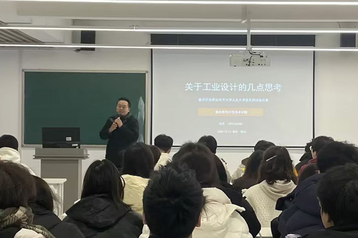 12月12日上午,重庆师范大学设计学负责人、硕士生导师陈昊教授来院作“关于工业设计的几点思考”讲座。学院工业设计专业师生聆听了讲座。讲座由学院副院长杜广彬主持。