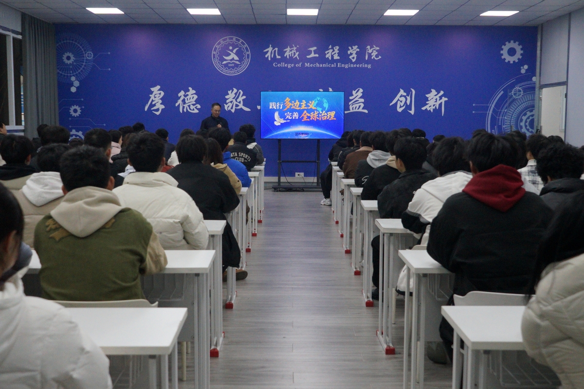 12月16日,学校常务副校长徐益在D228教室,为机械工程学院学子讲授“践行多边主义,完善全球治理”专题形势与政策课。此次课程紧密结合当前国际形势与国家发展实际,深入浅出地阐释了新时代中国参与和引领全球治理的理念与行动,引导同学们深刻理解世界发展趋势与中国担当。