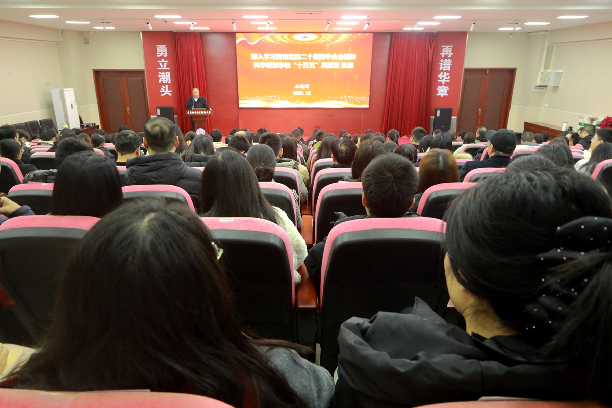 为进一步贯彻落实党的二十届四中全会精神,进一步深化学生思想政治教育,切实提高思政课教育教学成效,12月17日下午,校长石晓辉以《深入学习贯彻党的二十届四中全会精神 科学谋划学校“十五五”高质量发展》为主题为师生讲授了一堂生动的形势与政策课,授课由党委办公室副主任王娟主持,机关职能部门行政人员、车辆与交通学院、经济与管理学院师生代表、校团委学生干部参加学习。