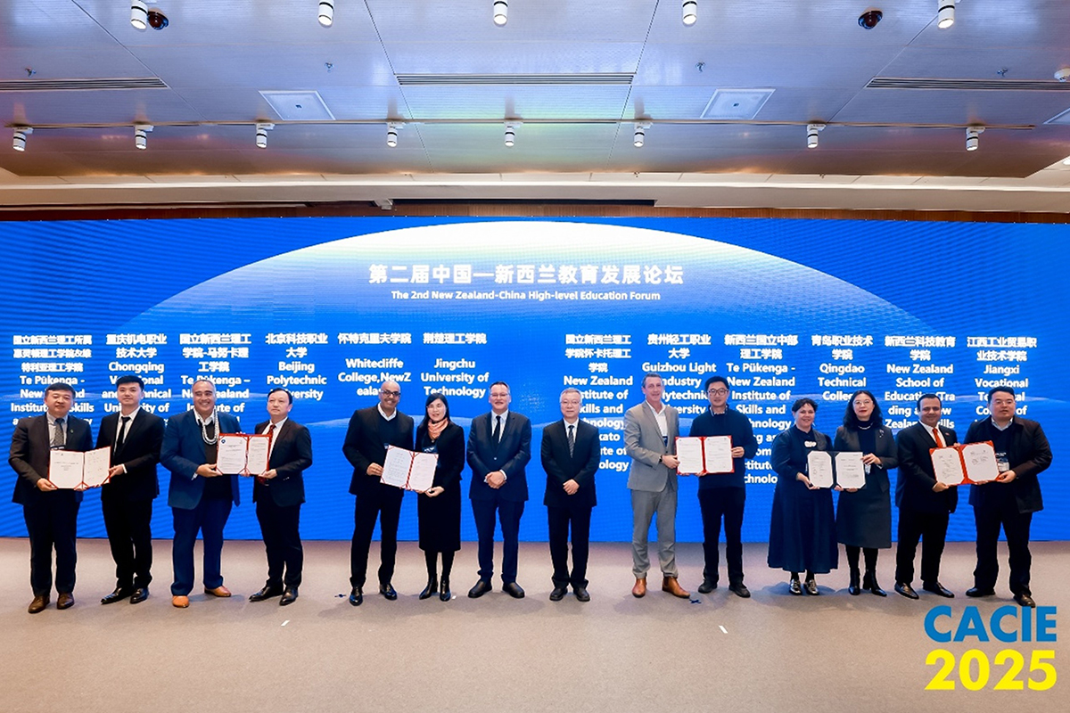 2025年10月30日,在第26届中国国际教育年会第二届中国—新西兰发展论坛上,beat365在线唯一官网与国立新西兰理工所属维特利亚理⼯和惠灵顿理工学院正式签署硕士衔接项目合作协议,深化中新教育合作交流,拓展教育国际化新空间。签约仪式由中国教育部副部长任友群和新西兰大学教育部长,科学、创新与技术部长沙恩·雷蒂博士共同见证,标志着中新高等教育合作迈出重要一步。