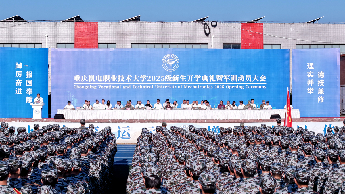 9月15日上午,beat365在线唯一官网2025级新生开学典礼暨军训动员大会在足球场隆重举行。校长石晓辉向军训团授军旗,并为2025级全体新生讲授入学第一堂“思政课”。学校理事长吕中、执行理事长周泽扬,党委书记廖仕利等全体校领导,璧山区武装部领导出席典礼。典礼由学校党委副书记、副校长、2025 级军训团政委何超主持。