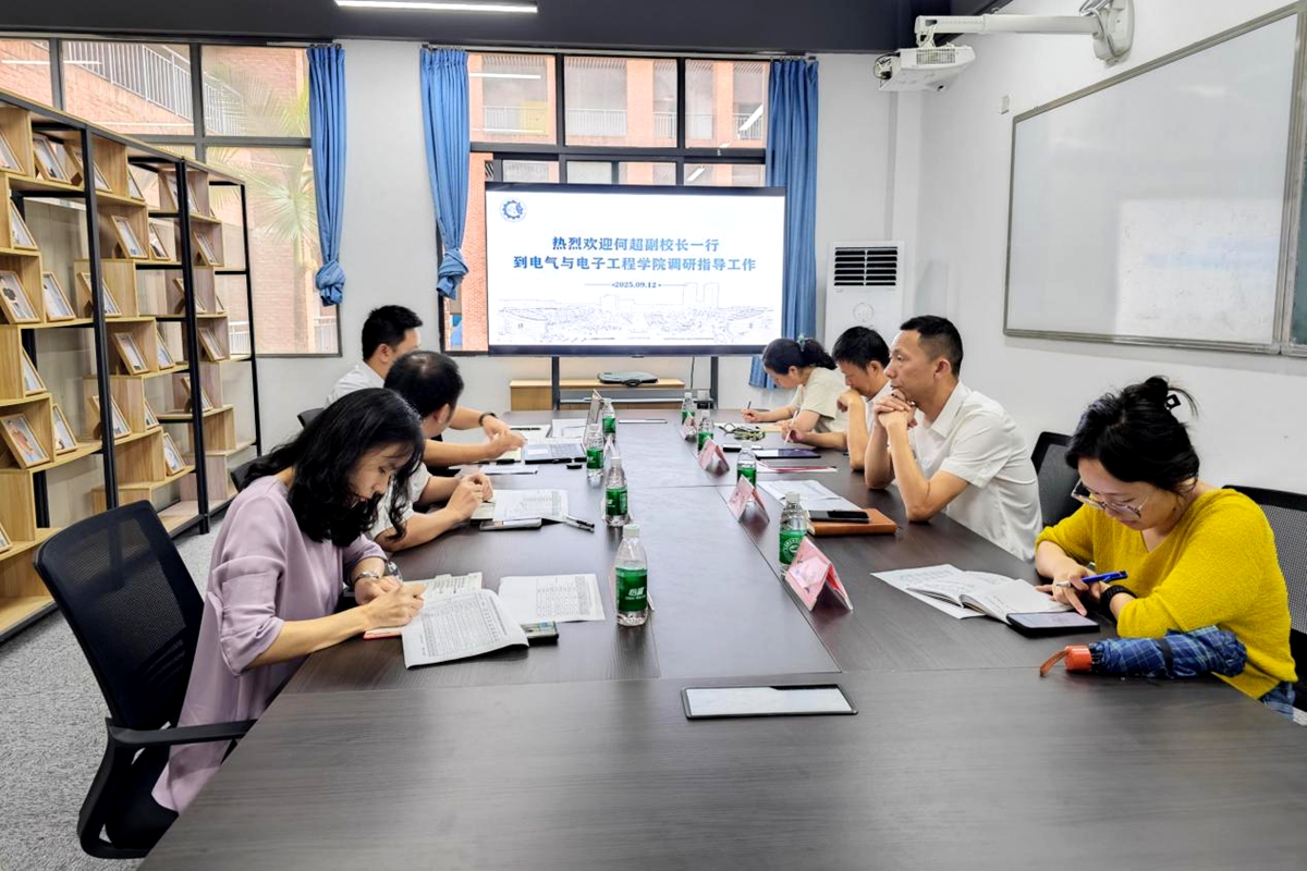 9月12日,学校党委副书记、副校长何超率招生就业处处长杨阳一行到电气与电子工程学院调研指导招生就业工作。学院执行院长、党总支副书记杨川,党总支副书记、副院长薛锋,副院长刘祥平,学工办主任陈阳等参加调研会。