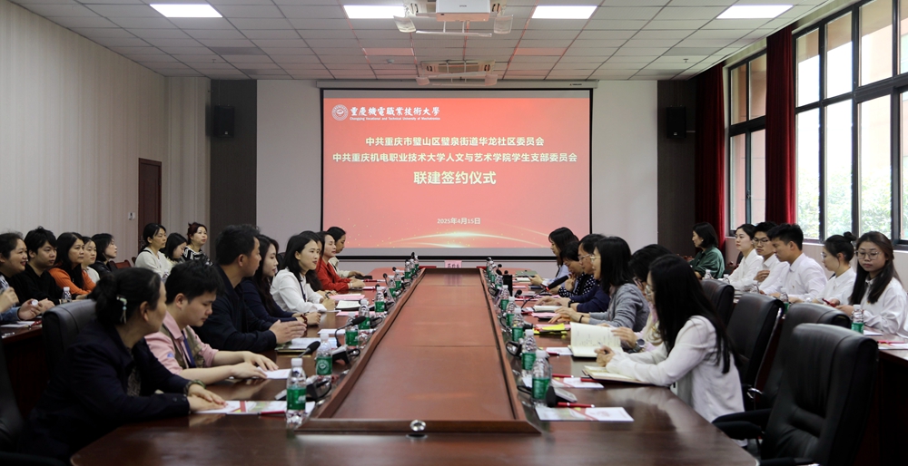 4月15日,学校人文与艺术学院学生党支部与璧山区华龙社区党委在A201会议室举行校地党支部“五共”建设签约仪式。学校党委书记、督导专员廖仕利,党委常务副书记程淑明,华龙社区党委书记张思桃出席签约仪式。