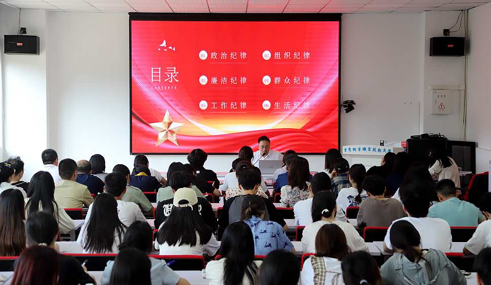 6月12日下午,学校党委书记徐益以《恪守“六大纪律”,筑牢思想根基》为题,讲授党纪学习教育专题党课。全体党支部书记、党员代表100余人聆听党课。
